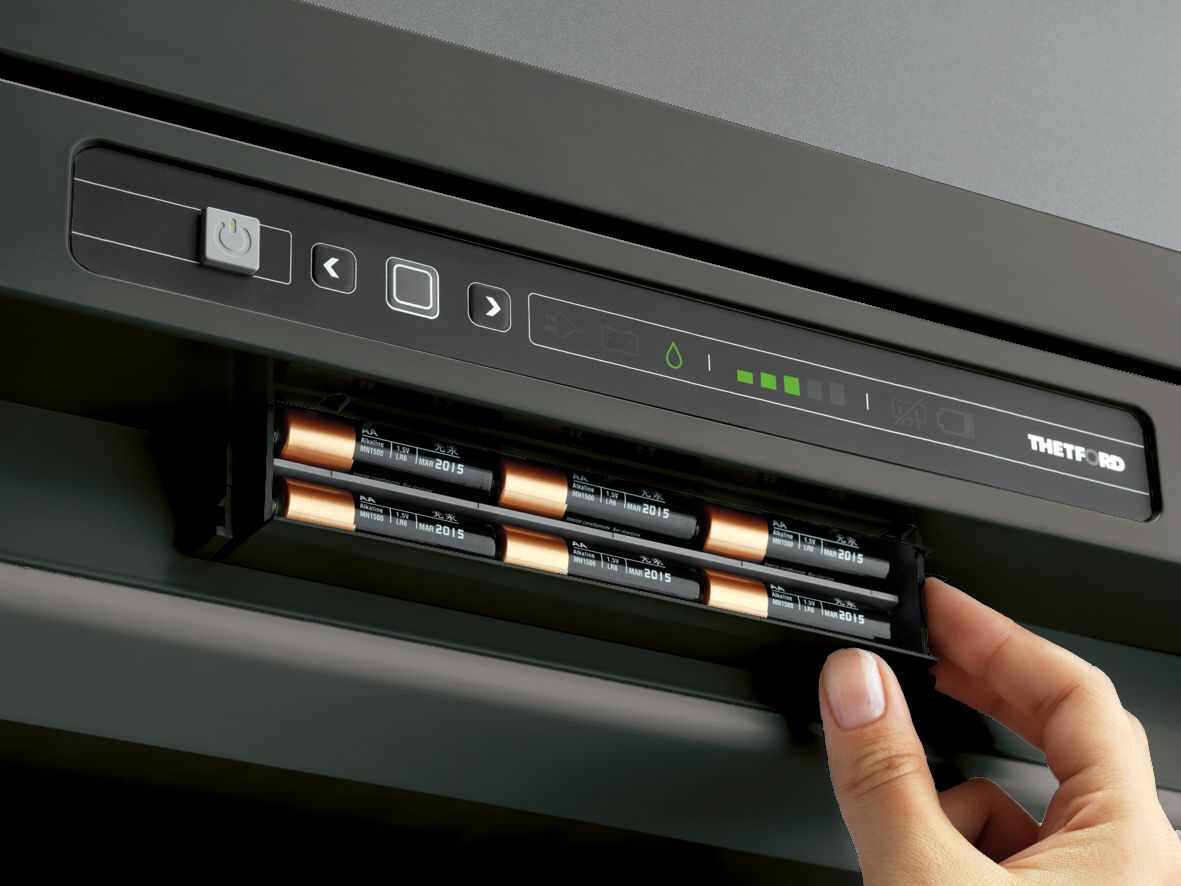Schránka na baterie pro lednice Thetford, pro autonomní provoz lednice řady N3000 E/N4000 E s LED ovládacím panelem. Není určena pro modely řady N3000 A s dotykovým displejem. Baterie (6 ks LR 6/AA) nejsou součástí produktu.