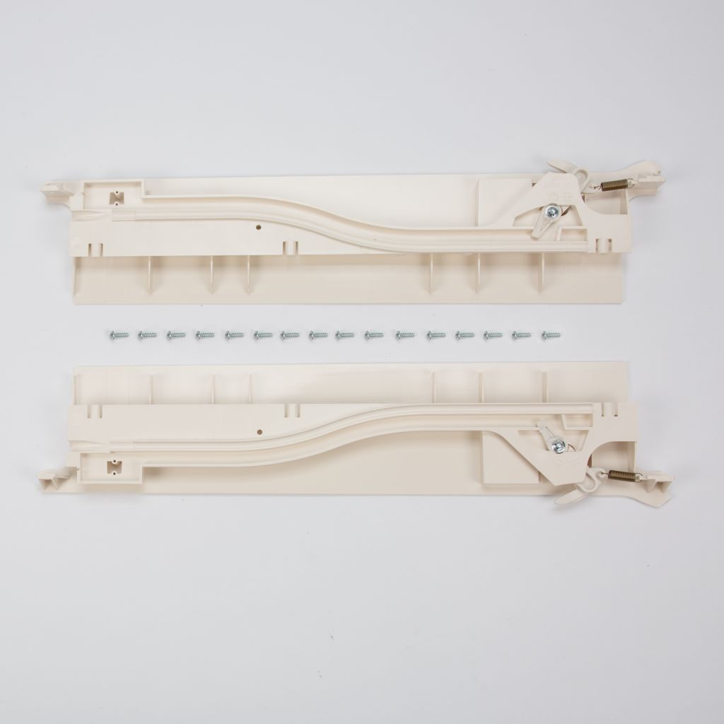 Boční vodicí lišty zvedacího mechanismu pro okno Dometic Midi-Heki Style, s otevíráním na kličku. Kompletní sada pro obě strany. Rozměry 54,2 × 17,2 × 5,6 cm.