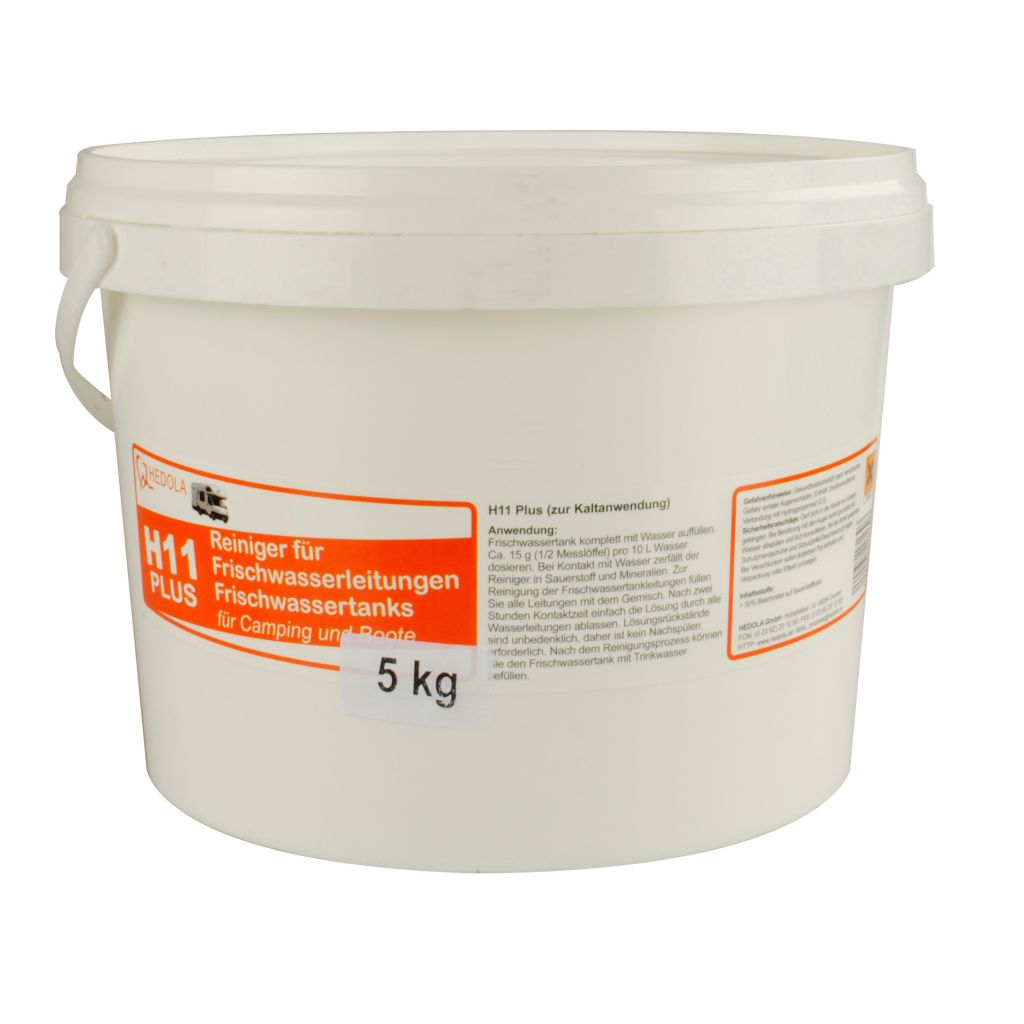 Použití: Naplněte nádrž na čerstvou vodu vodou. Přidejte přibližně 15 g (1/2 odměrky) na 10 l vody. Po kontaktu s vodou se čistič rozkládá na kyslík a minerální soli. Pro vyčištění nádrže na čerstvou vodu naplňte potrubí směsí. Po dvou hodinách kontaktu jednoduše vypusťte roztok přes všechny vodní potrubí. Zbytky jsou neškodné, proto není nutné další proplachování. Po vyčištění můžete nádrž naplnit pitnou vodou.