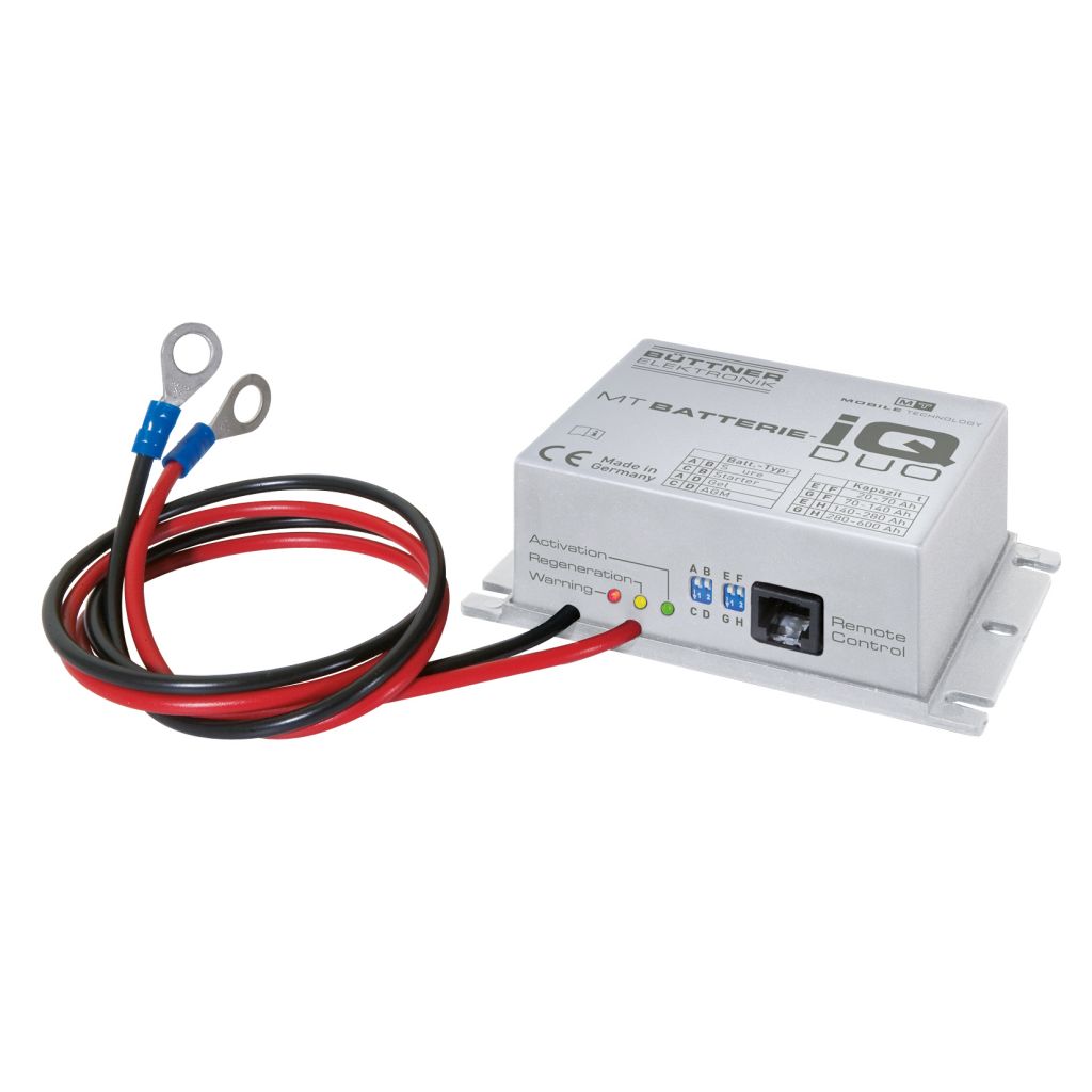 MT-IQ-DUO je speciálně navržen pro použití v karavanech; zabraňuje tvorbě škodlivých síranových usazenin a udržuje baterii v kondici pomocí různých programových intervalů. V závislosti na provozním režimu (jízda/nabíjení nebo nečinnost) jsou intervaly používány podle přesně definovaných map provozu motoru. Přepínatelný podle typu baterie (startovací nebo palubní, olověná, gelová nebo AGM) a její kapacity. K dispozici možnost dálkového ovládání!