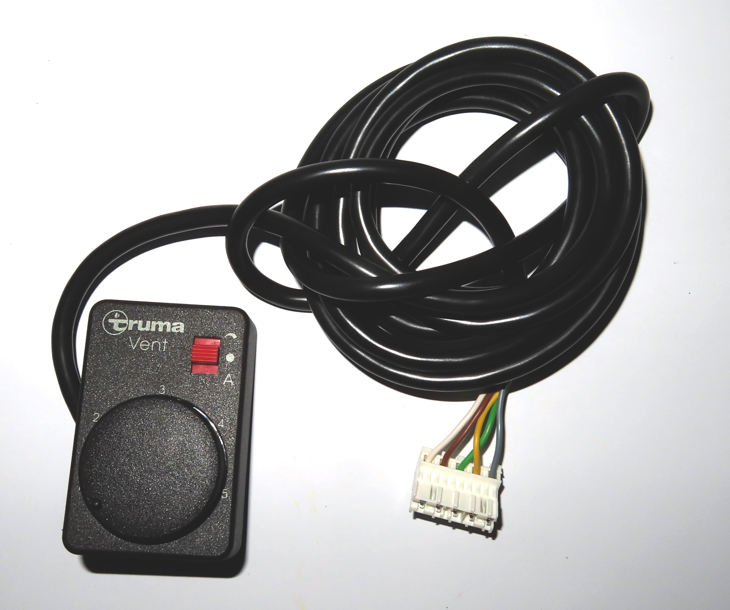 Ovládací jednotka k ventilátorům topení Truma typu TEB-2 a TEN-2, které se vyráběly v rozmezí od roku 05/1996 do 12/2014. Určena pro montáž na stěnu, délka kabelu cca 2,5 m.