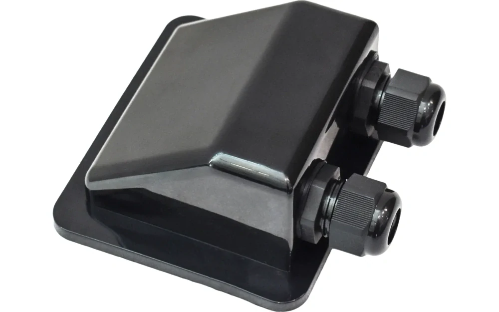 Střešní průchodka pro 2 kabely průměru 5 - 12 mm, utěsněná matice se závitem M20, dostupná v černém nebo bílém provedení. Dvojitá střešní průchodka je UV-odolná a vodotěsná a poskytuje spolehlivou ochranu proti povětrnostním vlivům. Po nalepení zaručuje trvale stabilní a bezpečné spojení. Ideální pro aplikace, kde je požadována jednoduchá instalace.
